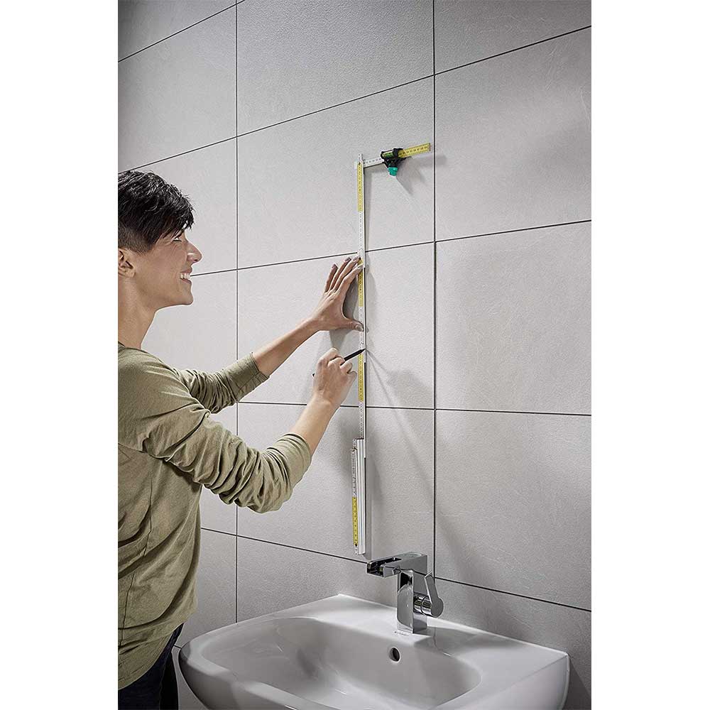 - Για την οριζόντια ή κάθετη ευθυγράμμιση με τη χρήση ενός πτυσσόμενου ξύλινου μέτρου.