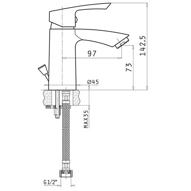 - Με εύκαμπτους σωλήνες από ανοξείδωτο ατσάλι και με διάμετρο σωλήνα 1/2″.