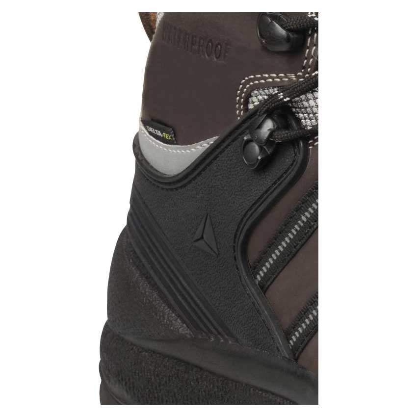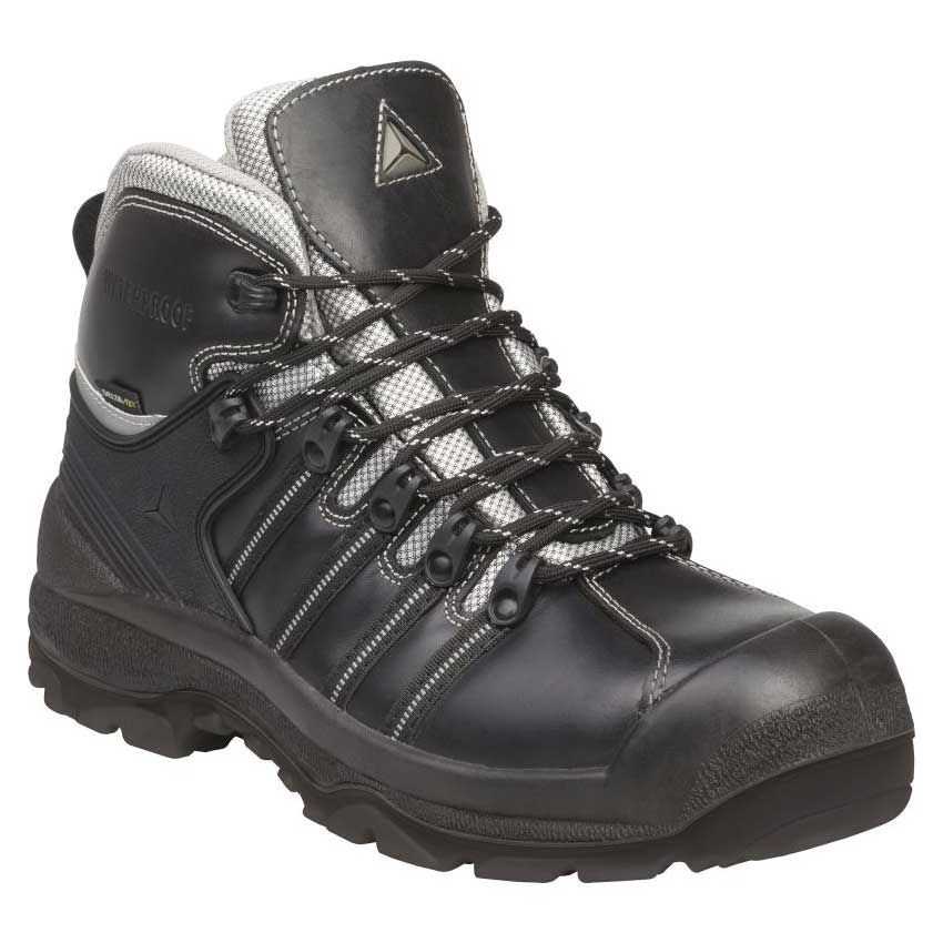 Αδιάβροχα μποτάκια ασφαλείας κατασκευασμένα από δέρμα Buffalo με μπροστινή ενίσχυση σε PU. Προστασία που διέρχεται από μια καινοτόμο ιδέα, της DELTA PLUS (PANOPLY) στεγανότητας και αντοχής στο νερό. Μη μαγνητικό παπούτσι εργασίας. Διατίθονται σε χρώμα μαυρο και καφέ.