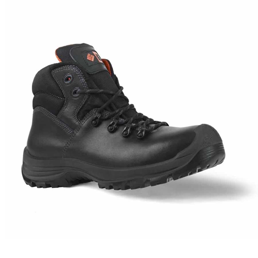 Μποτάκια με προστασία δακτύλων από ανθρακόνημα τεχνολογίας Q-Flex και σόλα δύο στρωμάτων PU, διαφορετικής σκληρότητας.