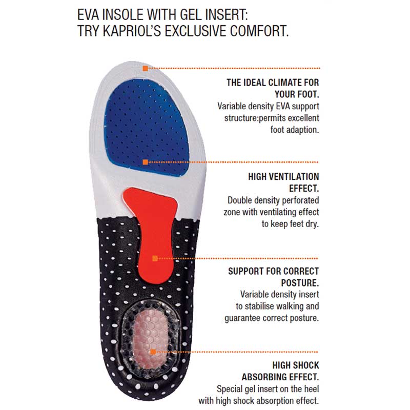 - Η εσωτερική σόλα έχει gel στο πίσω μέρος της, ιδανικό για την απορρόφηση των κραδασμών.