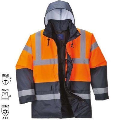 Αρχική » Είδη Προστασίας εργαζομένων » Ρούχα εργασίας » Τζάκετ - φόρμες - γιλέκα φωσφορούχα » Μπουφάν πορτοκαλί – μπλε αδιάβροχο με ανακλαστικές ταινίες