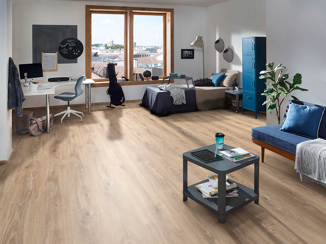 Τα όμορφα δωμάτια αξίζουν ένα όμορφο δάπεδο. Με το Castello από την Krono Original®, μπορούν να υλοποιηθούν ακόμη και οι πιο φιλόδοξες σχεδιαστικές σας έννοιες. Είναι γερμανικής προέλευσης, κλάσης AC4/32, αντιβακτηριδιακό, ιδιαίτερα απλό στην τοποθέτηση και σε πολύ καλη τιμή.