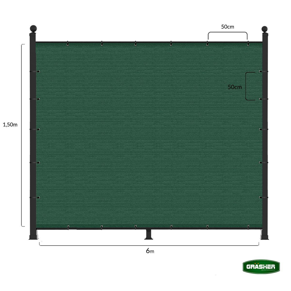 Διαχωριστικό Δίχτυ Περίφραξης 160gr/m² Πράσινο 150mmx6m GRASHER Με Κρίκους