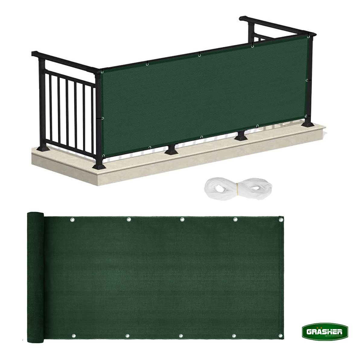 Διαχωριστικό Δίχτυ Μπαλκονιού 160gr/m² Εκρού 0,75x6m GRASHER Με Κρίκους