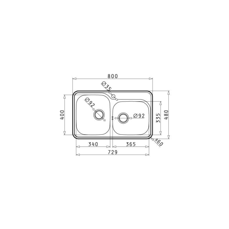 Ένθετος Νεροχύτης Inox 86x50cm AMALTIA PYRAMIS