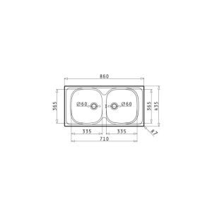 Ένθετος Νεροχύτης Inox 86x50cm AMALTIA PYRAMIS