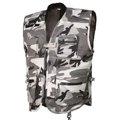 - Γιλέκο σε απόχρωση παραλλαγής άμμου κατάλληλο για χρήση από κυνηγούς, στρατιωτικούς ή γενική χρήση.