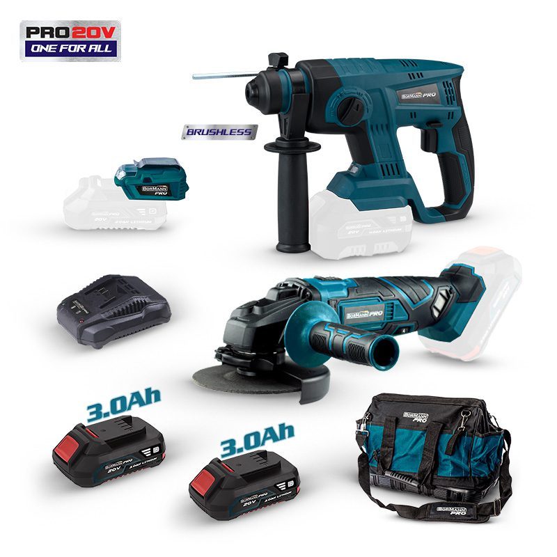 ΓΩΝΙΑΚΟΣ ΡΥΘΜΙΖΟΜΕΝΟΣ+ΠΝΕΥΜΑΤΙΚΟ ΣΚΑΠΤΙΚΟ SDSPlus+2 ΜΠΑΤΑΡΙΕΣ 3.0AH+ΤΣΑΝΤΑ+ΑΝΤΑΠΤΟΡΑΣ USB-ΦΑΚΟΣ BORMANN Pro