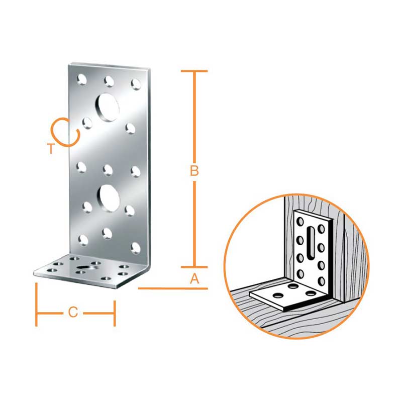 - Διαστάσεις: A: 100 x B: 60 x C: 60 x T: 2,5 mm