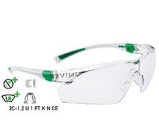 - Γυαλιά προστασίας με διάφανο φακό και λευκό/πράσινο σκελετό, εξαιρετικά ελαφριά με πολύ καλή εφαρμογή καθώς οι βραχίονες ρυθμίζονται κατά ύψος και κατά μήκος.