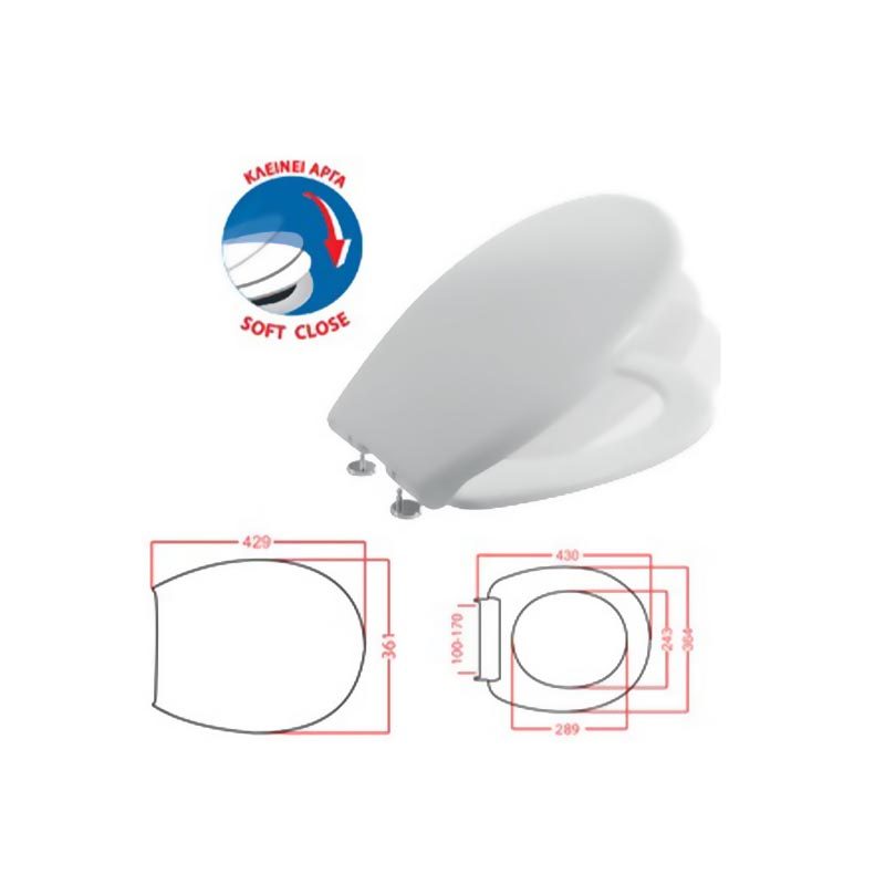 - Διαθέτει σύστημα soft close(Αργό κλείσιμο) για το εύκολο και αθόρυβο κλείσιμο του,καθώς την αποφυγή σπασίματος του καλύμματος