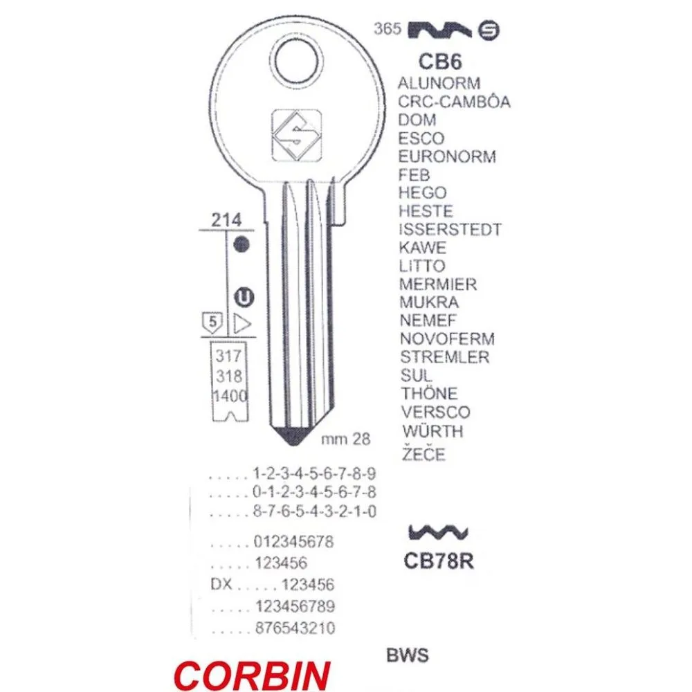 Αρχική » Εργαλεία » Είδη κιγκαλερίας » Λουκέτα - Μύλοι - Κλειδαριές » Κλειδιά Πόρτας » Κλειδιά » ΚΛΕΙΔΙΑ ΚΥΛΙΝΔΡΩΝ SILCA CRB 28 CORBIN CB6
