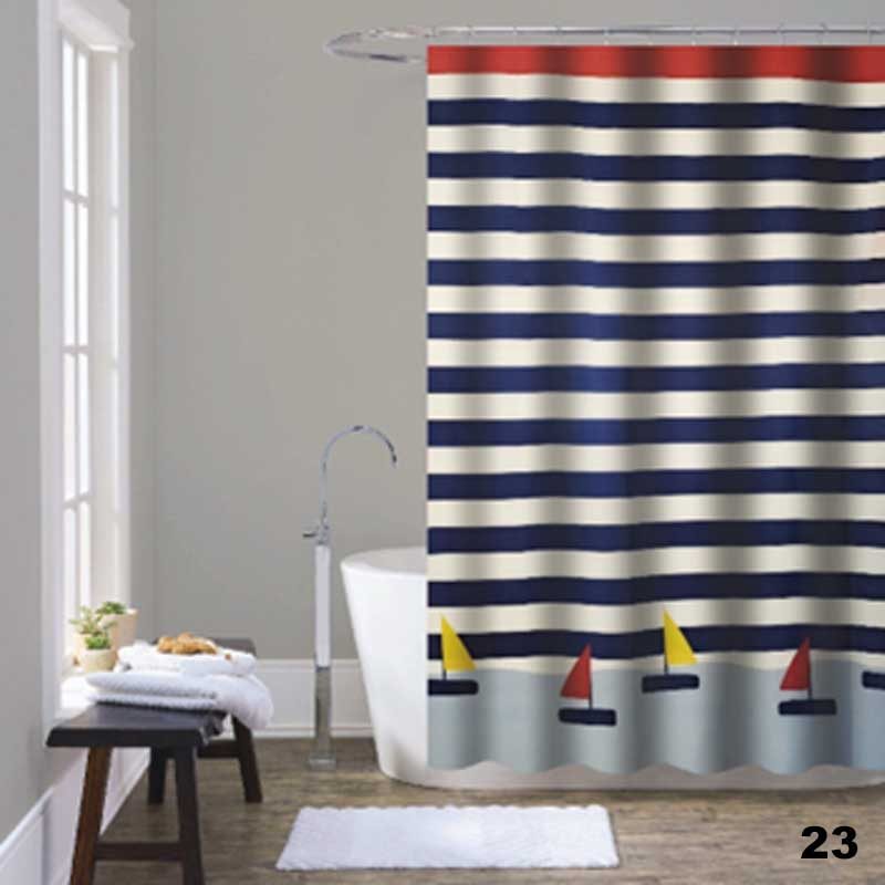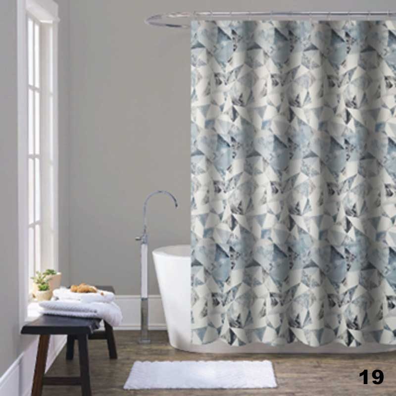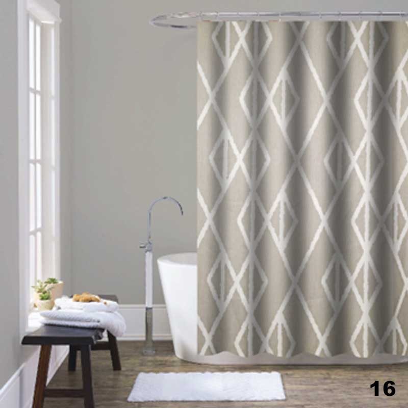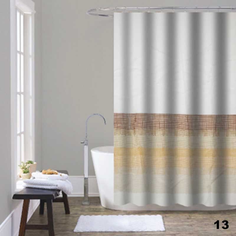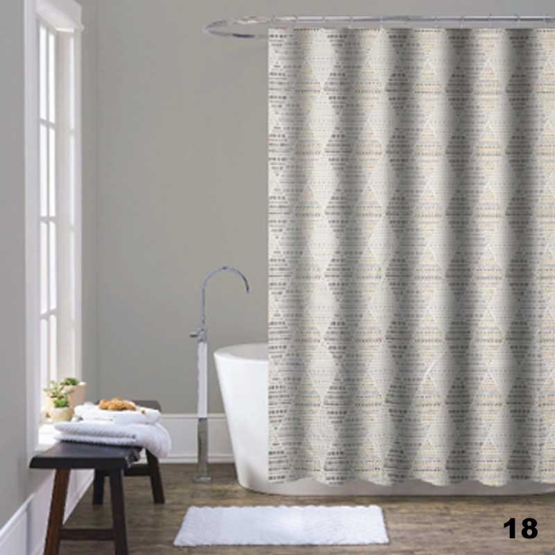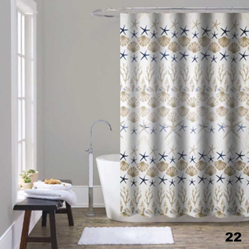 Κουρτίνα μπάνιου υφασμάτινη,πλενόμενη,με βαρίδιο για άψογη εφαρμογή,σε διάφορα σχέδια,συμπεριλαμβάνονται οι κρίκοι.