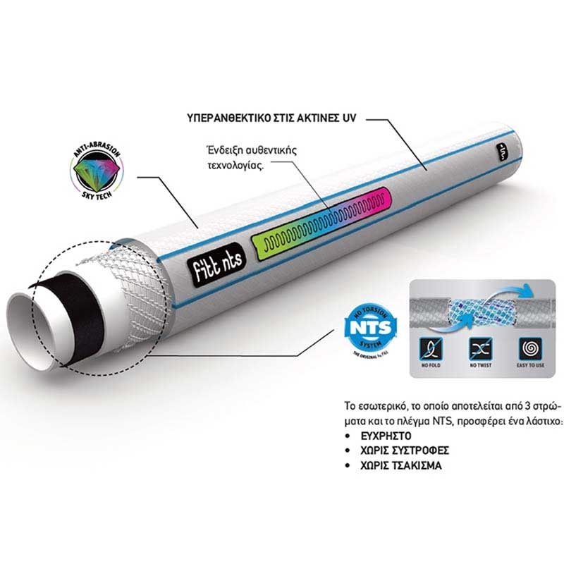 Λάστιχο κήπου κατασκευασμένο από πλαστικό άριστης ποιότητας, με πολυεστερικές ίνες, σε διάφορα μήκη.