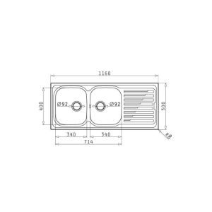 Ένθετος Νεροχύτης Inox 116x50cm AMALTIA PYRAMIS