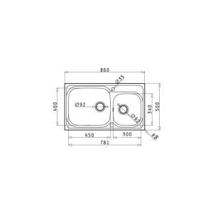 Ένθετος Νεροχύτης Inox 86x50cm DORIAN PYRAMIS