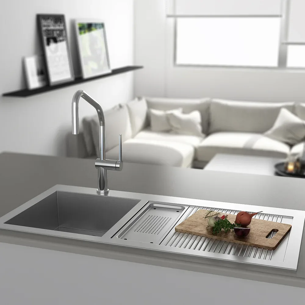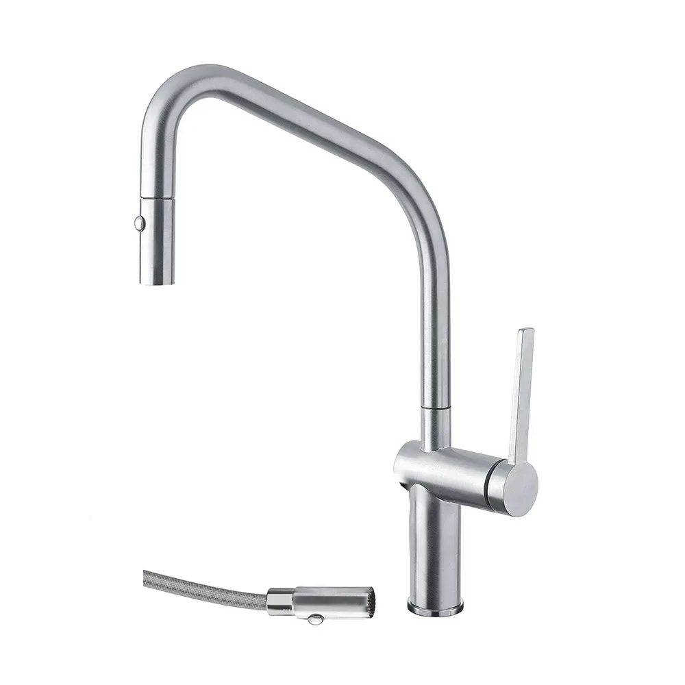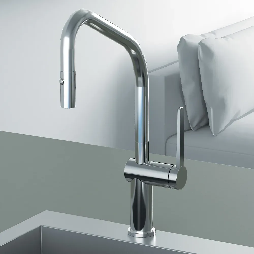 Μπαταρία νεροχύτη με περιστρεφόμενο κορμό και μεταλλικό, συρόμενο ντουζ δύο ροών. Η Vento φέρει την υπογραφή της εταιρείας Armando Vicario και χαρακτηρίζεται από εργονομικό design υψηλών σχεδιαστικών προδιαγραφών και κορυφαία κατασκευαστική ποιότητα, που προσφέρει μεγάλη ευκολία στη χρήση.