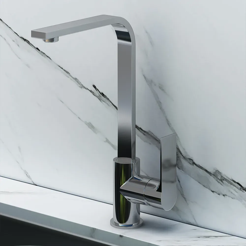 Μπαταρία κουζίνας Orabella, Linea με λεπτό, τετραγωνισμένο, περιστρεφόμενο ρουξούνι και με μια λαβή για εύκολη ρύθμιση της ροής και της θερμοκρασίας του νερού. Πρόκειται για μια μοντέρνα μπαταρία πάγκου, η οποία είναι κατασκευασμένη από τον οίκο Orabella, από υψηλής ποιότητας ορείχαλκο που προορίζεται τόσο για οικιακή, όσο και για επαγγελματική χρήση.