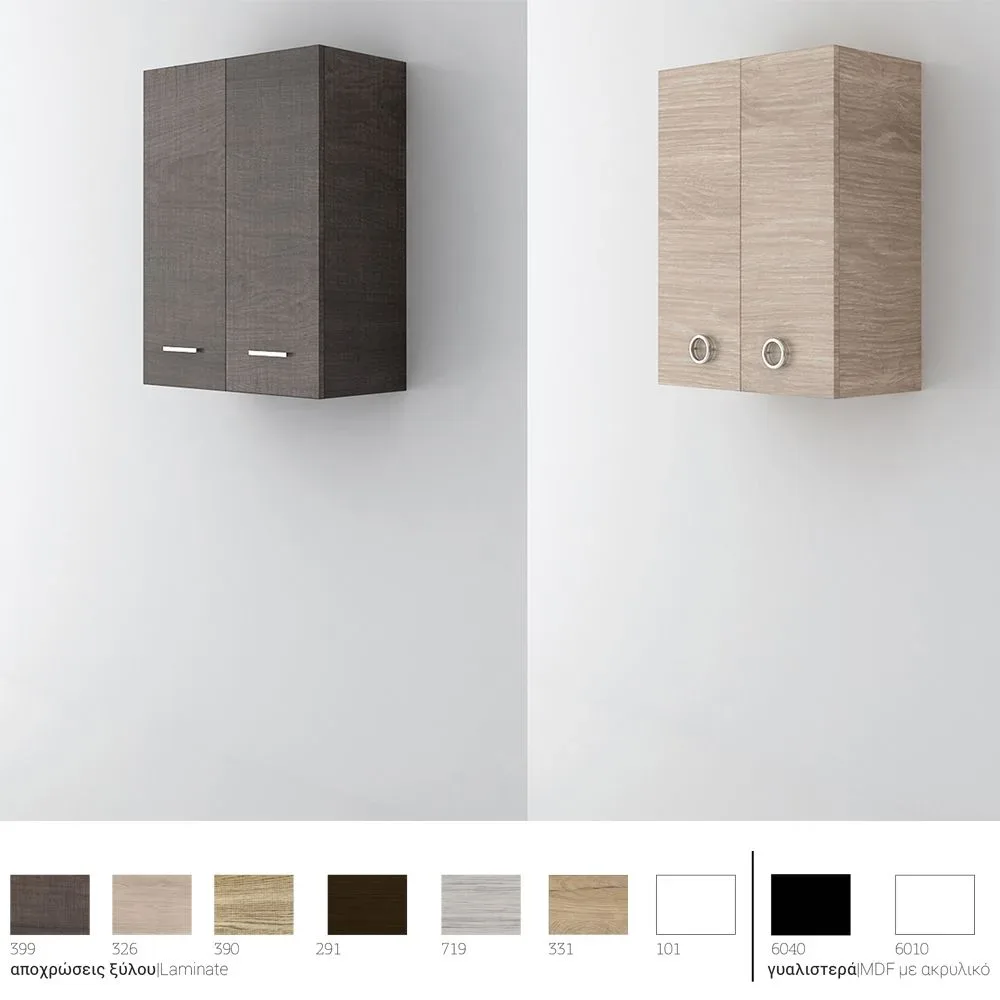 Κρεμαστό ντουλάπι πλυντηρίου Prima, το οποίο διαθέτει δύο εσωτερικά αποσπώμενα ράφια και δύο πόρτες, με μηχανισμούς κλεισίματος soft close που φέρουν την υπογραφή της BLUM. Επιλέξτε πόμολα ανάμεσα σε δύο χρώματα και τρία σχήματα. Διατίθεται σε πέντε διαφορετικές αποχρώσεις ξύλου και σε λευκό χρώμα Laminate καθώς και σε μαύρο και λευκό γυαλιστερό ακρυλικό σε mdf.