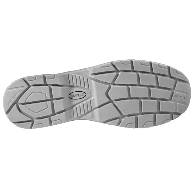 Η εξωτερική σόλα διπλής πυκνότητας από πολυουρεθάνη απορροφά κραδασμούς, ενισχύει τη φτέρνα και βελτιώνει την πρόσφυση σε διάφορες επιφάνειες. Παρέχει αντοχή σε καύσιμα και έλαια (FO), υψηλή θερμοκρασία (HRO) και αντιολισθητική προστασία (SR). Η ειδική χάραξη διευκολύνει την κίνηση σε σκάλες, ενώ οι αυτοκαθαριζόμενες προεξοχές εξασφαλίζουν σταθερό πάτημα.