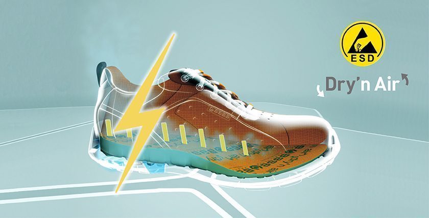 – Με ανατομικό και αφαιρούμενο πάτο Dry’n Air OMNIA ESD “weareco”, που εγγυάται την κυκλοφορία του αέρα μέσα στο παπούτσι με ηλεκτροστατική προστασία, ενώ είναι συμβατά με τις ανατομικές σόλες DRY’N AIR OMNIA ESD, SECOSOL και SECOSOL COMPLETE.