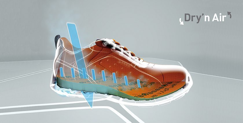 – Με ανατομικό και αφαιρούμενο πάτο Dry’n Air OMNIA, που εγγυάται την κυκλοφορία του αέρα μέσα στο παπούτσι, ενώ είναι συμβατά με τις ανατομικές σόλες DRY’N AIR GEL, SECOSOL και SECOSOL COMPLETE.