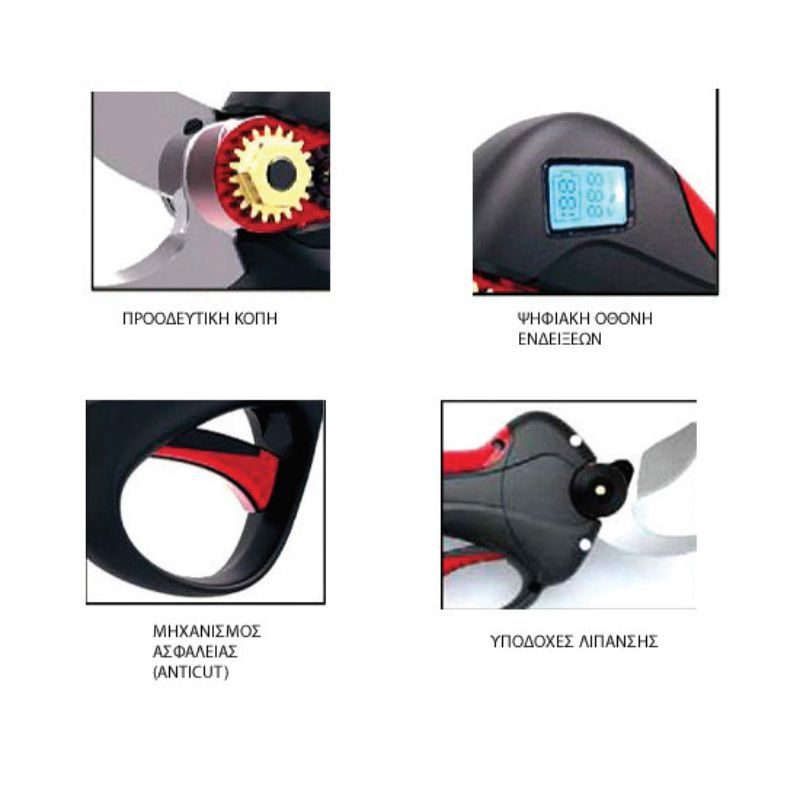 • ANTI CUT προστασία (σε περίπτωση που ο χρήστης ακουμπάει τη λάμα με το άλλο χέρι το ψαλίδι σταματάει άμεσα)