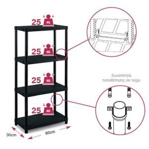 Πλαστική ραφιέρα με 4 ράφια QBlack Terry