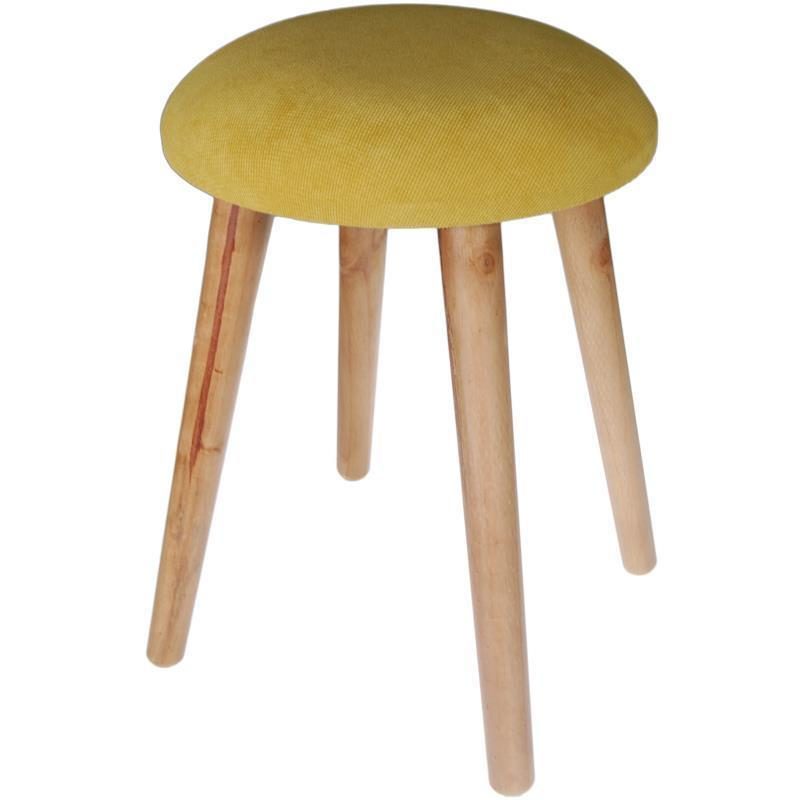 Σκαμπώ υφασμάτινο κίτρινο με ξύλινα πόδια Υ37×35Ø εκ.