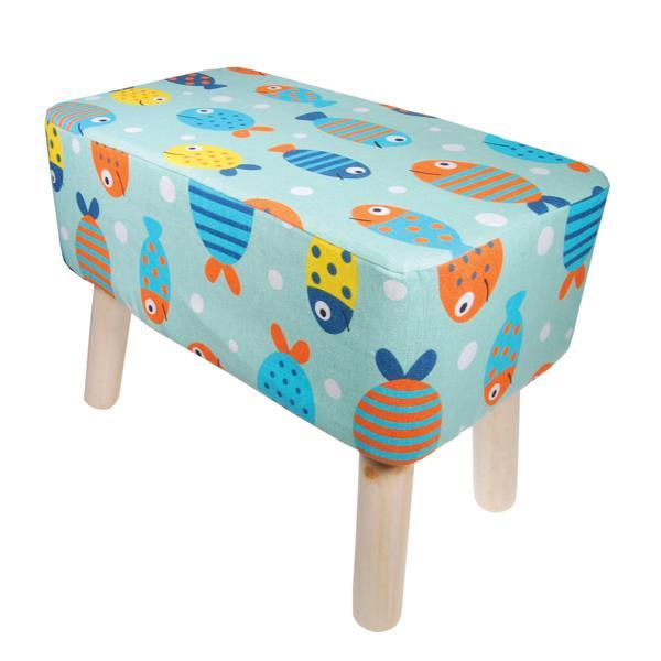 Σκαμπώ υφασμάτινο “ψαράκια” με ξύλινα πόδια Υ37x50x27εκ.