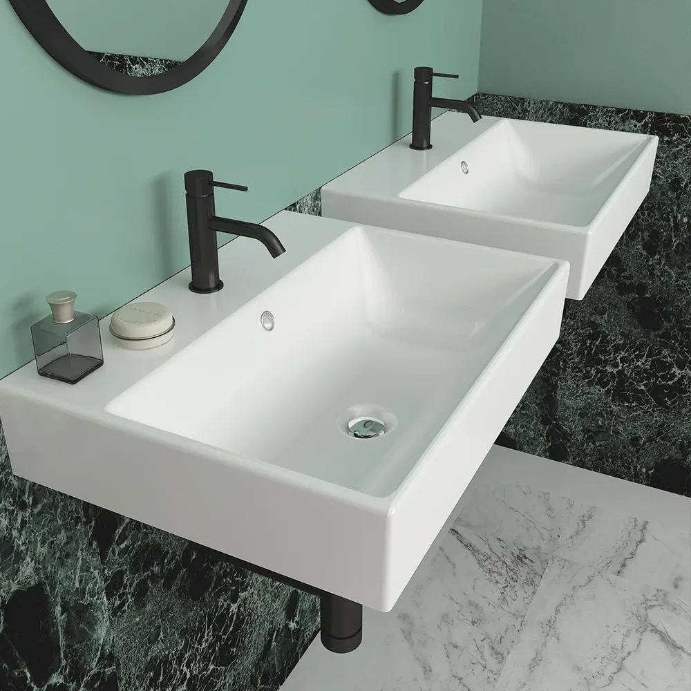 Η εταιρεία Tecla προσφέρει μια σειρά ειδών υγιεινής που χαρακτηρίζονται από ιδιαίτερα υψηλά σχεδιαστικά και λειτουργικά standards. Οι νιπτήρες της σειράς Amabile είναι ορθογώνιοι, μοντέρνοι, κρεμαστοί (μπορούν να τοποθετηθούν και ως ένθετοι επίπλων), νιπτήρες μπάνιου από πορσελάνη με οπή για τοποθέτηση βρύσης. Μπορούν να συνοδευτoύν από ορειχάλκινη βαλβίδα κλικ-κλακ για νιπτήρες με υπερχείλιση, κατόπιν επιλογής.