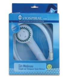 - Σετ που περιλαμβάνει τηλέφωνο μπάνιου 3 ροών και σπιράλ πλεκτό,λευκό,απλό με πλαστικά παξιμάδια,μήκους 150cm,1/2*1/2.