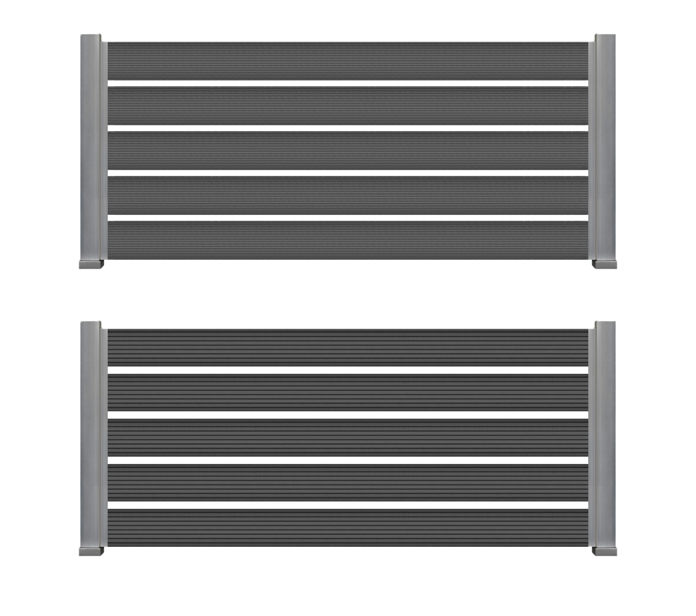 Συνθετικό Deck WPC περίφραξης εξωτερικού χώρου που αποτελείται από 55% ξύλο και 35% HDPE και 10% ρητίνες, UV σταθεροποιητές κλπ. Είναι διπλής όψης με στενό χτένι στη μία όψη και φαρδύ στην άλλη. Η περίφραξη με WPC έχει προσιτή τιμή και είναι κατάλληλη για πολλές εφαρμογές όπως περίφραξη οικοπέδου, κήπου ή πισίνας, εξωτερική περίφραξη, επένδυση τοίχου, φράχτη, αυλόπορτας κτλ.